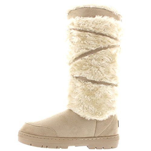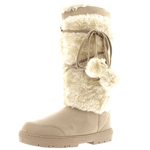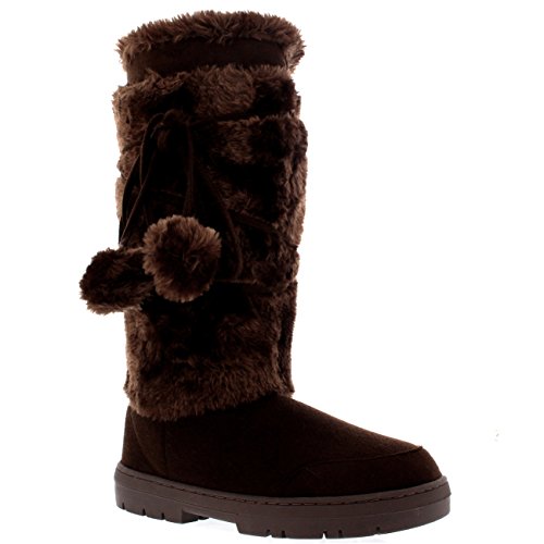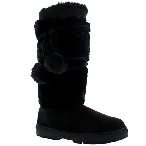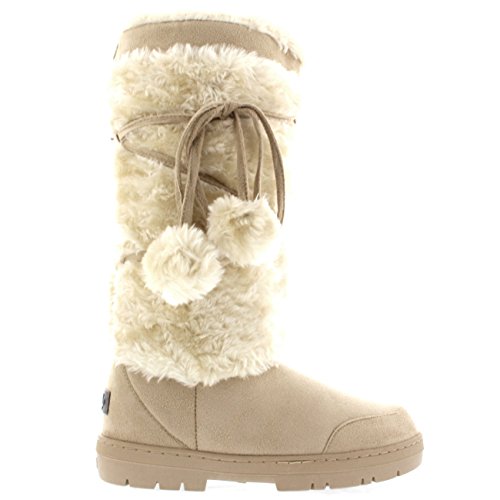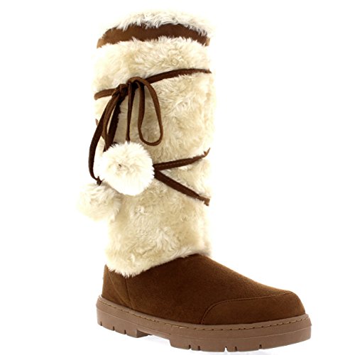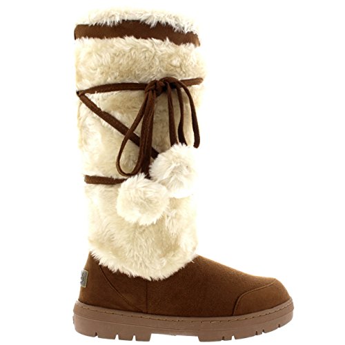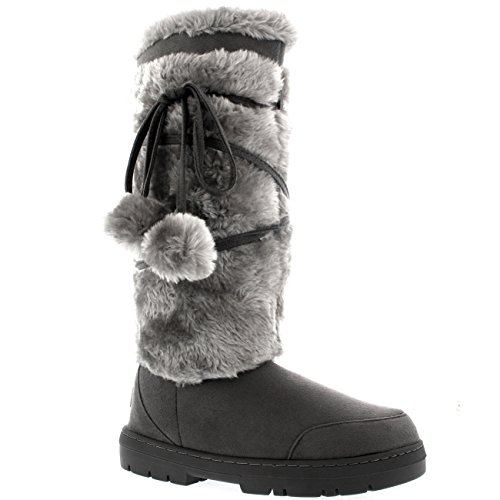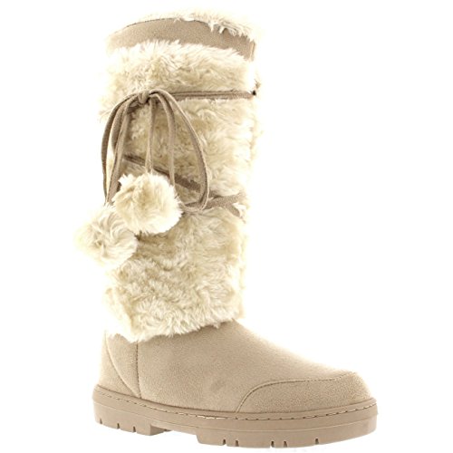 Binding : Apparel Product Description Tall fur boot with lace up pom-pom design. Thick fur lined throughout the boot which is also featured along the top. The outsole is light, flexible and durable with a deep tread ideal for cold winter days. This boot will provide ultimate comfort and warmth throughout the autumn and winter seasons. 0