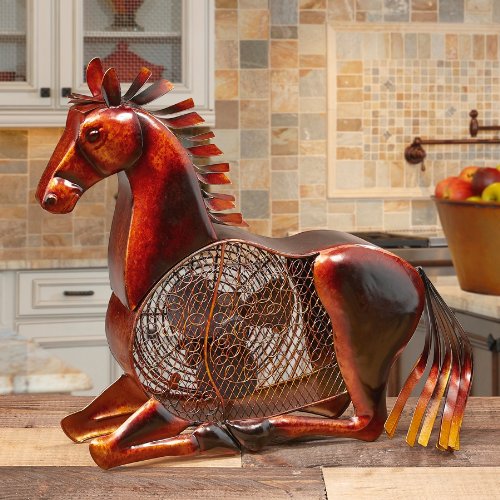 - Feature : Decorative Figurine Fan shaped like a Horse is 18-inches tall by 19-inches wide / Made of high-quality cast metal with a brown finish / UL Approved; 3-Pedaled fan blade; 30-watt copper-spun motor / Simple on/off; smooth-running operation; 1-year limited warranty / From desktop and tabletop to floor standing and outdoor fans, and designs for every category - fun, modern, traditional, tropical and more - Deco Breeze has a fan to meet your decorating and gift giving needs