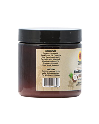 The Tropic Isle Living Jamaican Black Castor Oil Coconut Hair Food, infused with Organic Coconut, Rosemary, Neem oils, Shea Butter, and Vitamin E strengthens hair shaft, promotes healthy scalp & hair growth and adds definition, luster, and shine to dry, dull, weak hair. THIS PRODUCT CONTAINS: No Artificial Fragrances No Parabens No Petroleum No Sulfates No Synthetic Dyes INGREDIENTS Jamaican Black Castor Oil, Organic Coconut, Meadowfoam Seed, Rosemary & Neem Oils Vitamin E, Shea Butter, Bees Wax, Palm Stearic Acid Includes Manufacturer's WarrantyFeature