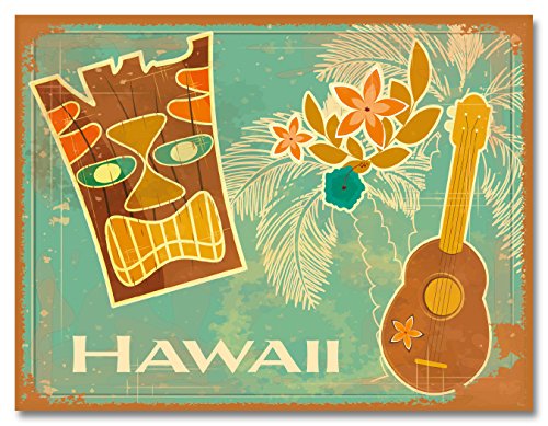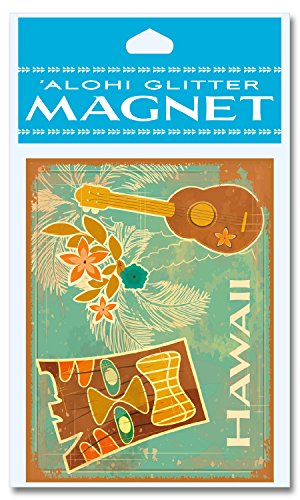 Glitter Embellished Hawaiian Art Collectible Magnet - Vintage Tiki & Ukulele by Tatyana Scherbanova