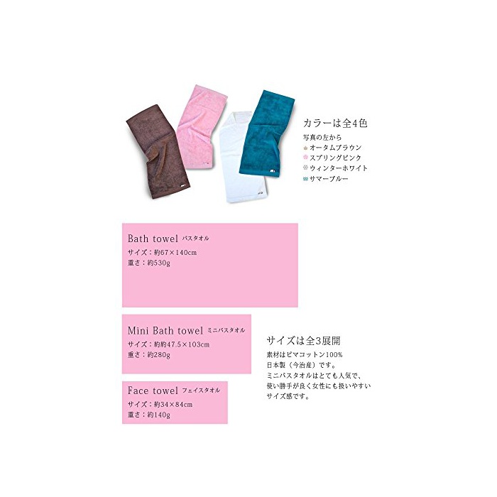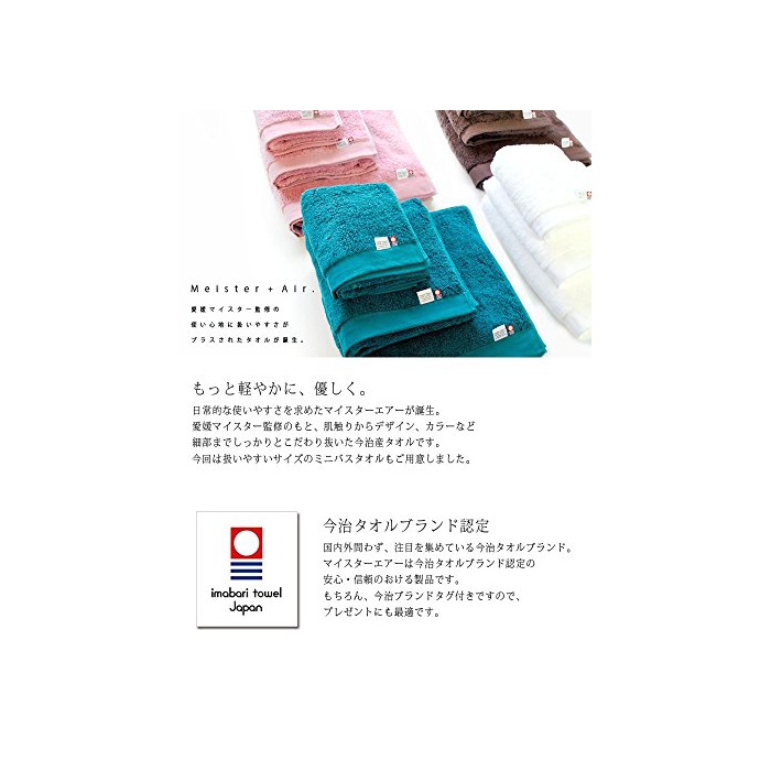 【3타입을 준비】마이스터 에어는 버스 타올 페이스 타올 외에,사용하기 쉽은 미니 버스 타올을 준비 가져왔습니다. 【사이즈】약67×140cm 【무게】약530g 【소재】면100% 【원산국 】일본제(이마바리)