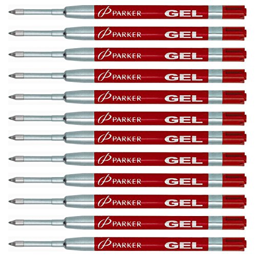 Parker Quink Gel Ink Refills for Rollerball Pens, Medium Point, Red, 12 Total Refills (30529)