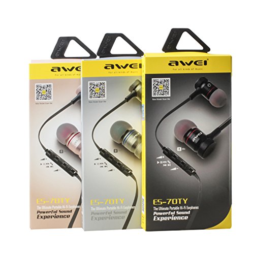 -. Binding : Wireless Phone Accessory -. Brand : AWEI -. Feature : ·Sound -- Metal accoustic chamber shell, two balanced drivers, in-ear design, together they deliver powerful bass as accurate and lifelike hifi sound. Try 3 different sizes era tips to get ideal noise canceling effect. / ·Cable and plug -- Adopt oxygen-free copper wires effectively reduce distortion rate to ensure high-definition sound. Reinforced each joints among the cable, sustain tens of thousands plug in and plug out with no affect audio quality. 3.5 mm gold plated plug earpods, gold is anti-oxygen metal, to ensure long-term accurate sound. / ·Remote -- Inline control cellphone calls or network voice calls,answer/end/reject, volume control, last song, next song. Of course it has built-in microphone. / ·Applicability -- Compatible with Nintendo Switch, all models of mobile phones, iPad, tablets, PCs, laptops and any 3.5 mm audio port devices. / ·Fine package as a gift for birthday, father's day, mother's day, Christmas day, thanks giving day, etc. There are 1 headphone, 3 pairs of comfortable snug and secure fit silicon ear tips, 1 cable clip in it. -. Label : AWEI -. Manufacturer : AWEI -. PackageQuantity : 1 -. ProductGroup : Wireless -. ProductTypeName : WIRELESS_ACCESSORY -. Publisher : AWEI -. Studio : AWEI -. Title : In Ear Earbuds Noise Cancelling Headphones Gold Plated Plug Wired Earphones With Microphone Volume Control Remote For MP3 Cell Phones Tablets Laptops PC