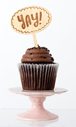 Party Partners 6 Count Decorative Wood Cupcake Toppers, Yay!