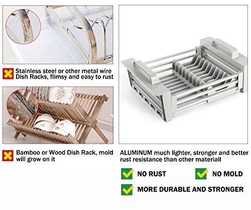 Miusco Expandable Over The Sink Dish Drying Rack, Dish Drainer, Sink Colander, Aluminum