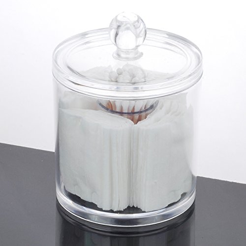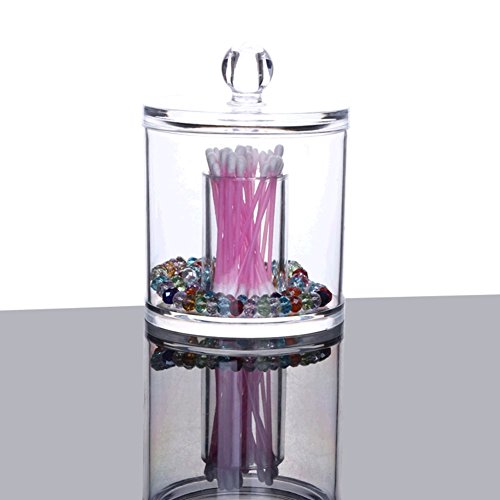 Xuzog Clear Acrylic Round Cotton Swabs Holder & Swab Makeup Storage , Cosmetic Organizer For Cotton Swabs