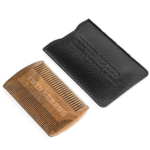 Twin Beards 100% Sandalwood Beard Comb with PU Leather Slipcase