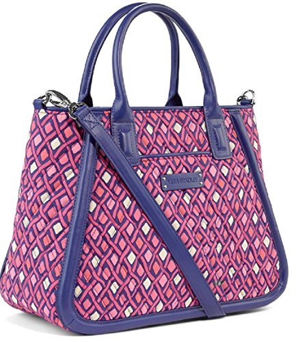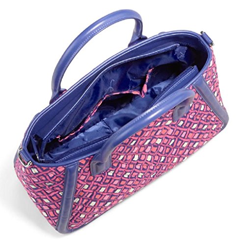 With a classic trapeze silhouette, this medium-size satchel is perfect for work, the weekend and everywhere in between. It features faux-leather trim and handles, a recessed zip-top closure and plenty of pockets to keep things organized. The front slip pocket is perfect for keys or a phone, while the inside offers one zip and two slip pockets.Feature
