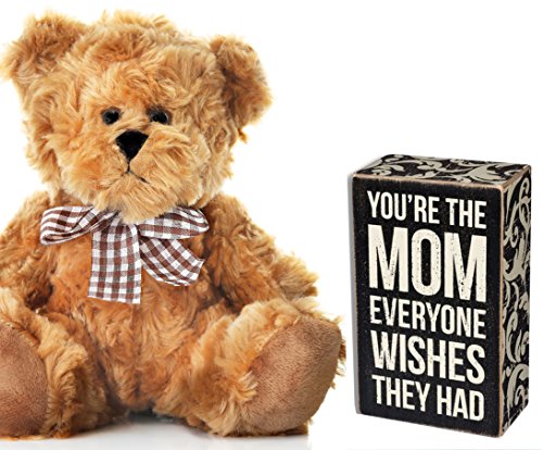 - PERFECT GIFT FOR MOM OR MOTHER IN LAW - This unique gift for women is the perfect present for mom from a son, daughter, or stepkid. It combines a rustic wooden mom plaque that says "I <3 that you're my mom" in bold white letters and a cuddly teddy bear that is sure to make mom smile. Wooden plaque fits nicely on a shelf, coffee table, or work desk for all to see.