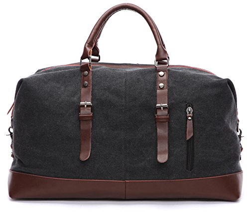 -. Title : NKTM Travel Duffel Bag Oversized Canvas Bag PU Leather Weekend Bag Overnight Bag - Black