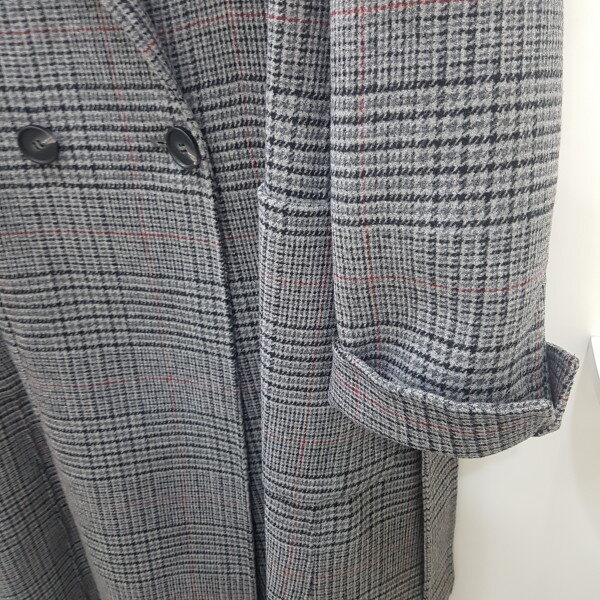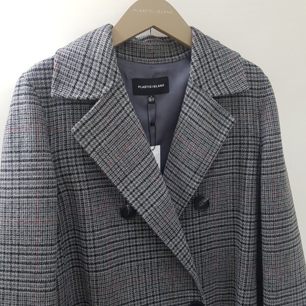 체크롱트렌치형코트예요..기장감이 길고 따뜻한느낌이며 세련되고 캐주얼하게코디하기편해요!