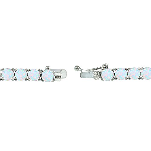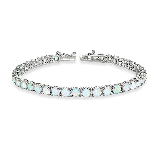 FEATURE - This attractive tennis bracelet displays 4mm round prong set simulated white opal gemstones. This gemstone bracelet in fine jewelry is a great addition to your opal jewelry and opal gemstone jewelry collection; it will enhance your daytime and evening attire. It can be purchased as tennis bracelets for women and tennis bracelets for teen girls.