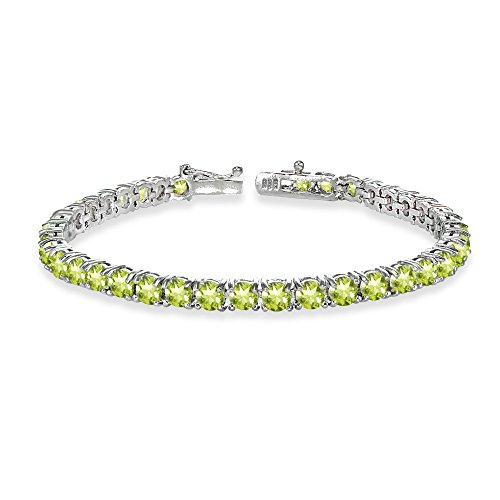 Sterling Silver 4mm Genuine, Created or Simulated Gemstone Round-cut Tennis Bracelet