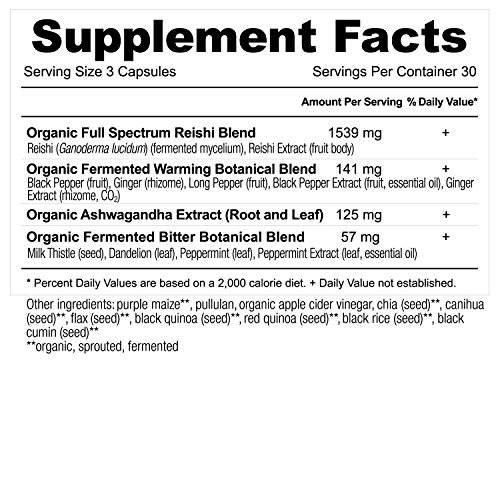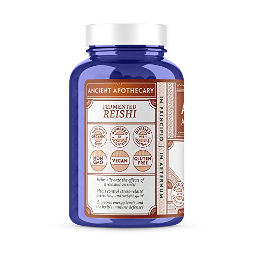 -. Title : Ancient Apothecary Fermented Reishi Mushroom Supplement, 90 Capsules — Infused with Organic Essential Oils, Ashwagandha Extract and Digestive Bitters