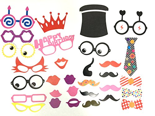 Timemorry 31 Piece Photo Booth Props DIY Kit for Birthday Party Photobooth Dress-up Accessories & Party Favors, Colorful Props on a Stick, Hats, Glasses, Mouth