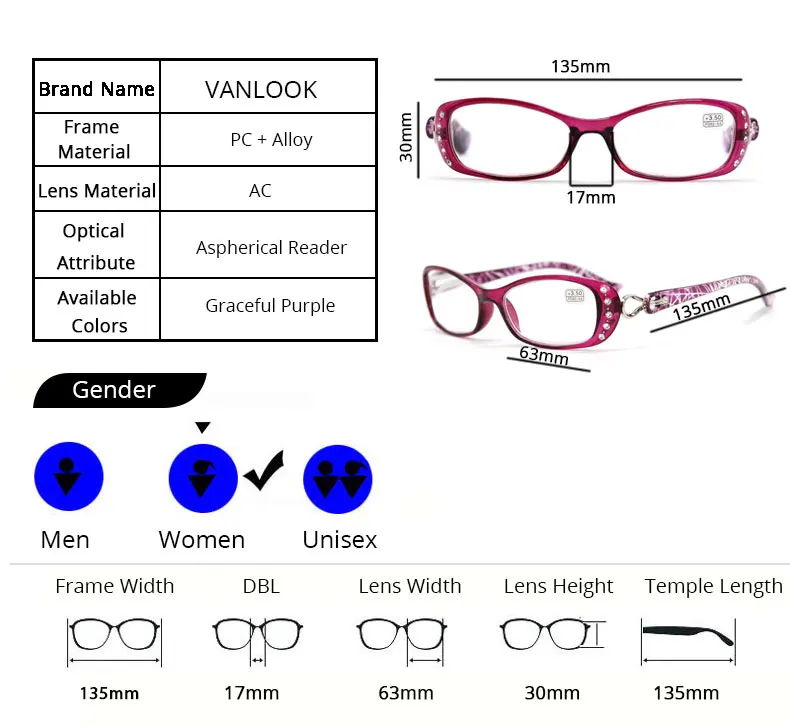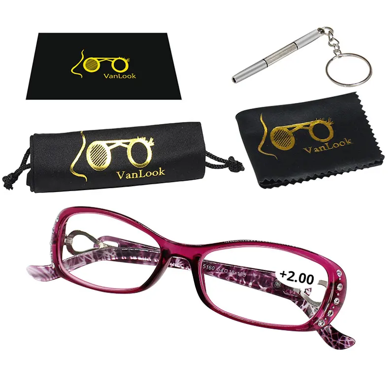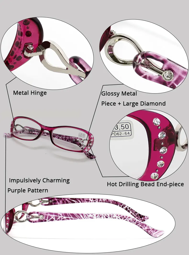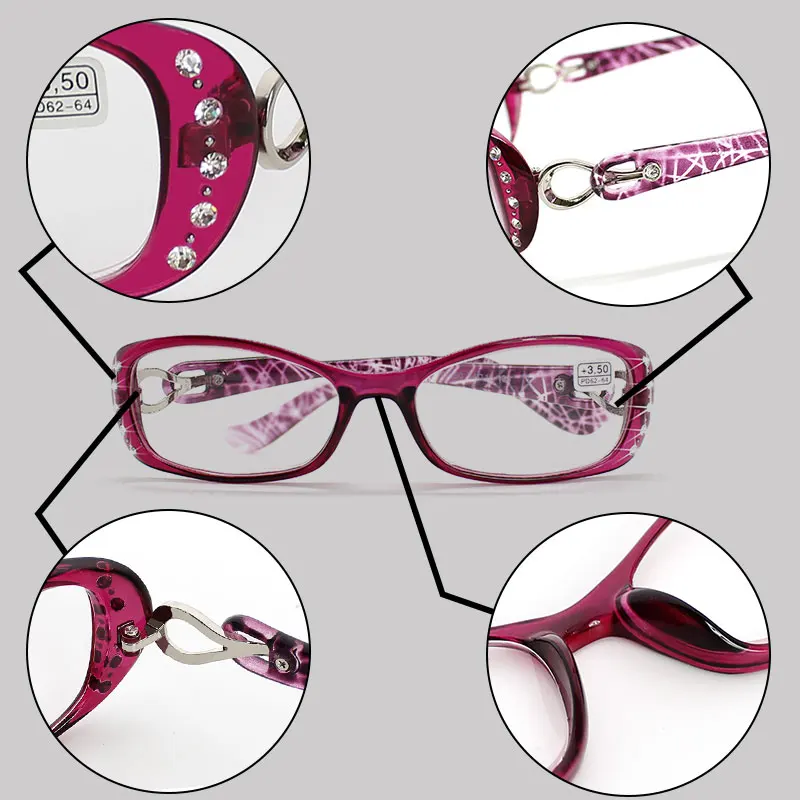 Style: Rectangle, Luxury Rhinestone Reading Glasses for Women