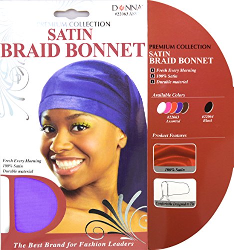 Product Description This Donna premium collection satin braid bonnet ensures your braids are fresh every morning. It is made of 100% durable satin material that is comfortable designed to tie. 0