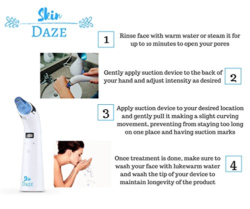 Skin Daze Electric Blackhead Remover - Extractor Kit For Women and Men - Best Vacuum Suction Face Cleaner - Nose, Facial Cleanser - Professional Whitehead, Acne And Pimple Treatment - Beauty Tool