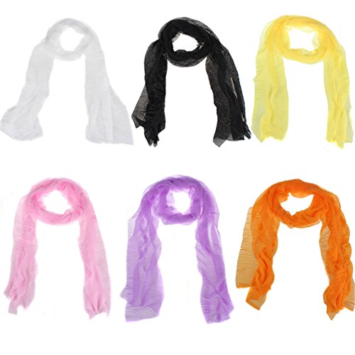 Feature : Fashionable, young and elegant scarf selections / Material:Polyester and Voile / Keep warm in autumn or keep stylish during the summer - these scarves are a multi-purpose accessory Must Have / Package Included:6 x Women scarves / Extremely light-weight,thin ,not hemmed, great for Spring Summer Autumn to wear