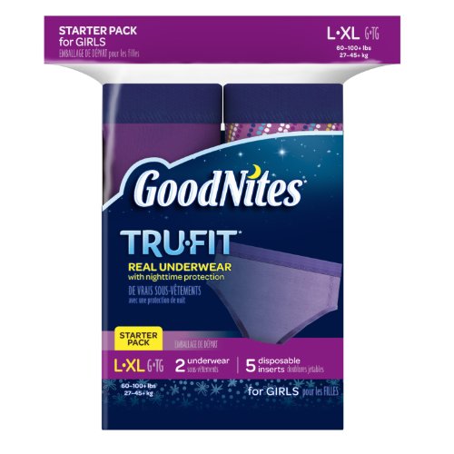 GoodNites TRU-FIT Underwear for Boys Starter Pack comes with 2 underwear and 5 disposable inserts.