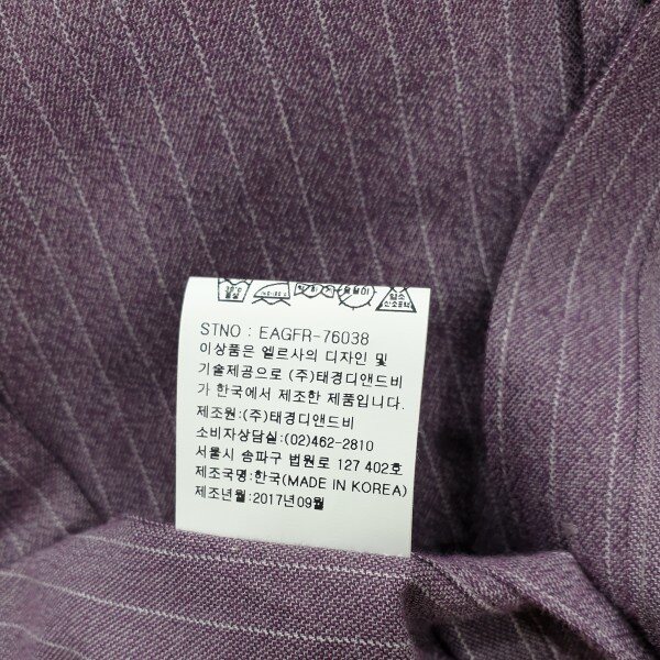 면100% 소재 연한와인 바탕에 스트라이프 패턴카라 스냅버튼정장.캐주얼 두루 활용성 좋음