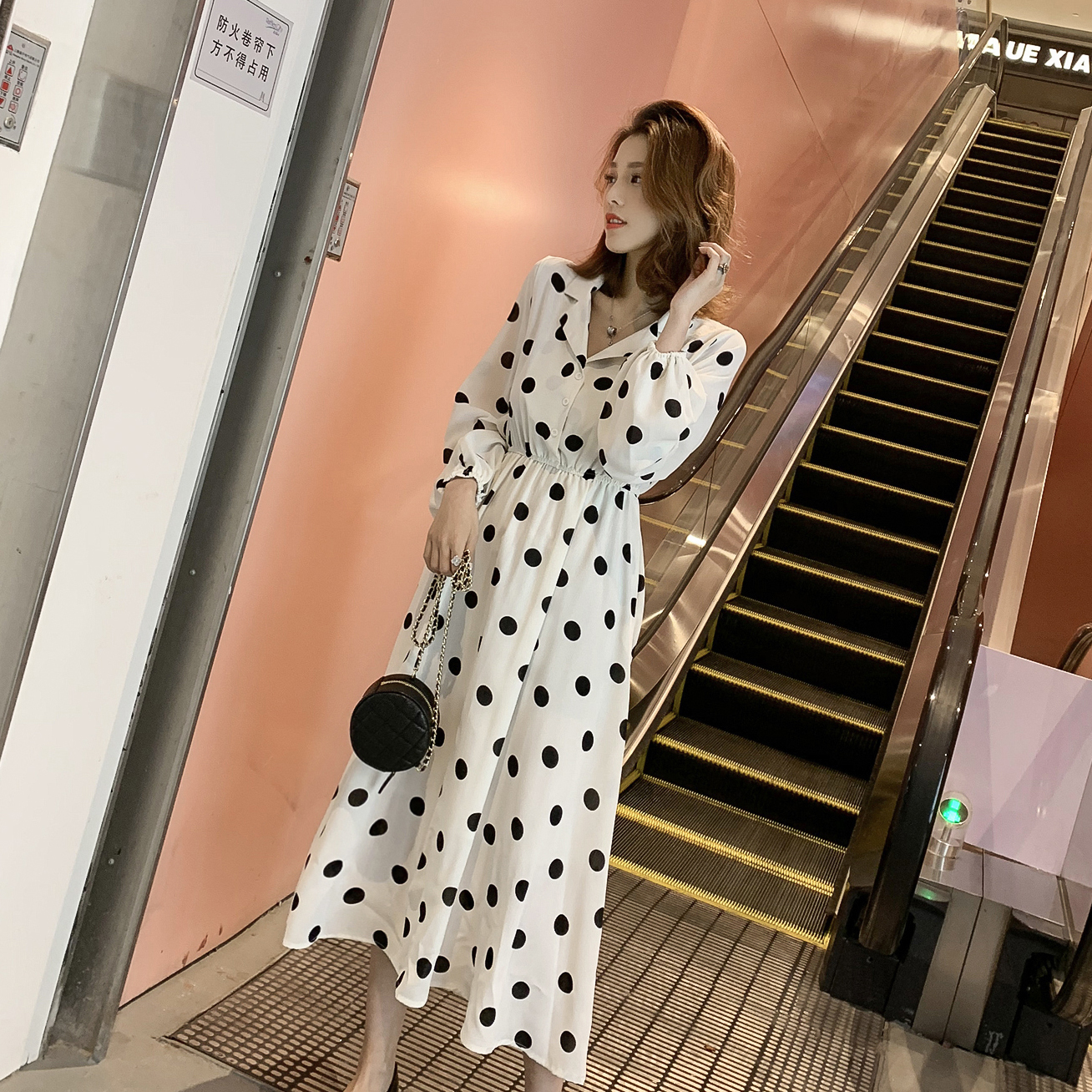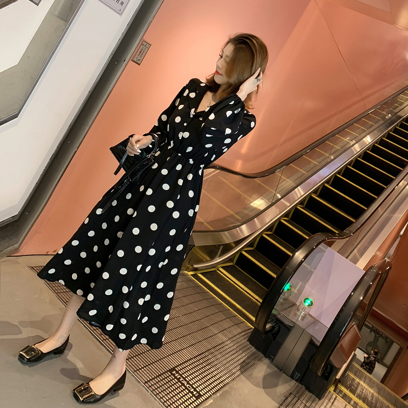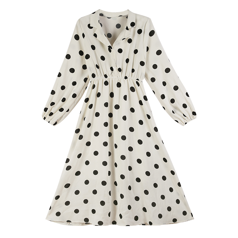 ワンピース レディース 長袖 ドット 水玉 Vネック ロング丈 ワンピ シンプル デート