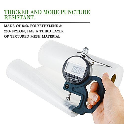 ROHS.LFGB.FDA.BPA Certified - Safe for Boiling, Freezing (freezer burn protection), Dishwasher, Microwave. 8 in + 11 in * 16.4 ft food sealer rolls perfectly fit to any Food Saver Sealer Machine (with special food sealer roll storage cell)