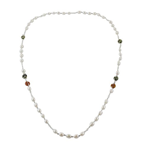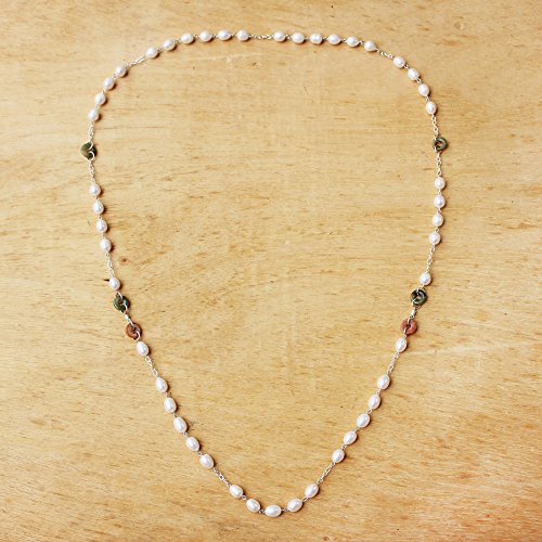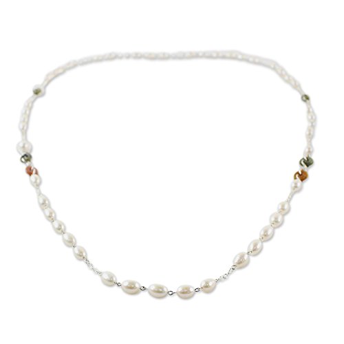 About this item: Elegance never goes out of style, and neither does our cultured pearl station necklace from Thailand's Somluck Komolmith. The long necklace features rings of colorful dyed quartz and jade, separated by sterling silver links. Double it up, or wear it long--either way it's a classic.