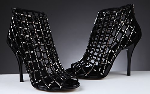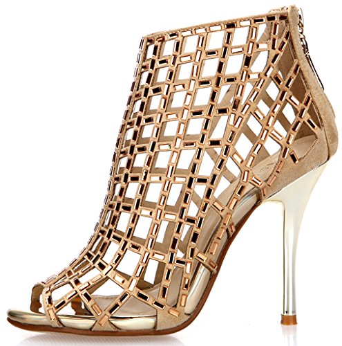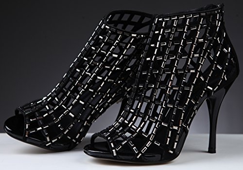 -. Binding : Apparel -. Brand : Littleboutique -. Department : womens -. Feature : By littleboutique, heeled sandal collectio / Add a touch of sparkle with these high heeled dress booties / Rhinestone embellishment on the vamp / Toe shape: Peep toe / Heel height/type: 3.75-4 inch -. ProductGroup : Shoes -. ProductTypeName : SHOES -. Title : Littleboutique Embellished Cutout High Heel Bootie Rhinestone Studded Sandal Heels Dress Sandal