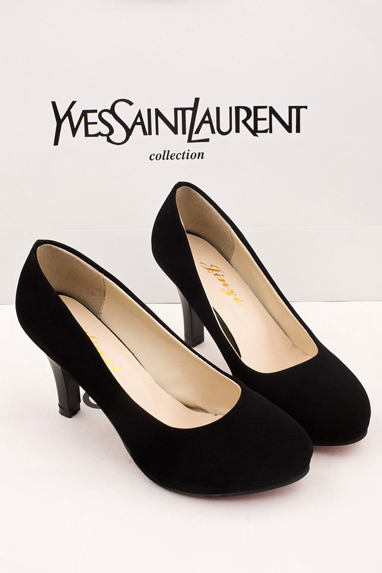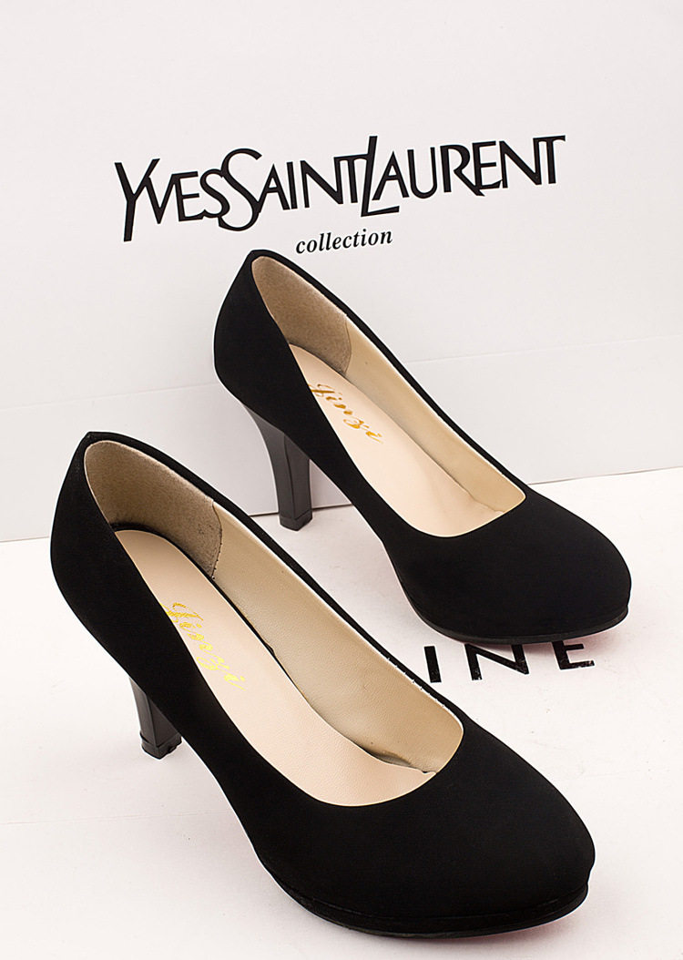6cm高跟鞋女 细跟防水台圆头黑色绒面单鞋学生礼仪职业大码女鞋子