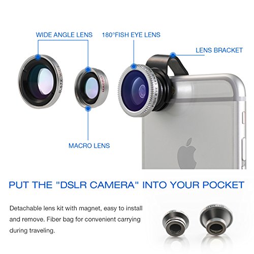 Detachable lens kit with magnet, easy to install and remove. Fiber bag for convenient carrying during traveling.