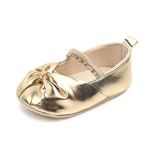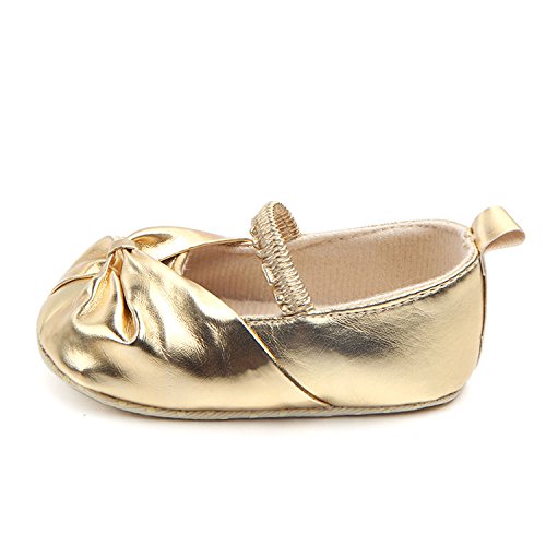 (M2cbridge)/Baby Stationery/Stationery Sets/DIRECT FROM USA/M2cbridge Baby Girl's Bow Dress Shoe Infant Toddler Pre-walker Crib Shoe (12-18 Months, Metallic)