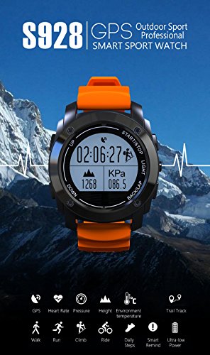 S928 GPS Real-time Heart Rate Monitor Smart Watch Air Pressure Environment Temperature Height 3D Accelerometer + Gyroscope for IOS & Android (black)