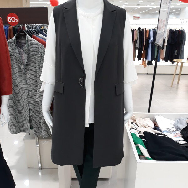 군더더기 없이 깔끔한 실루엣의 원버튼 슬리브리스 베스트입니다 테일러드 카라로 클래식하면서도 매니쉬한 무드가 느껴지는 제품입니다