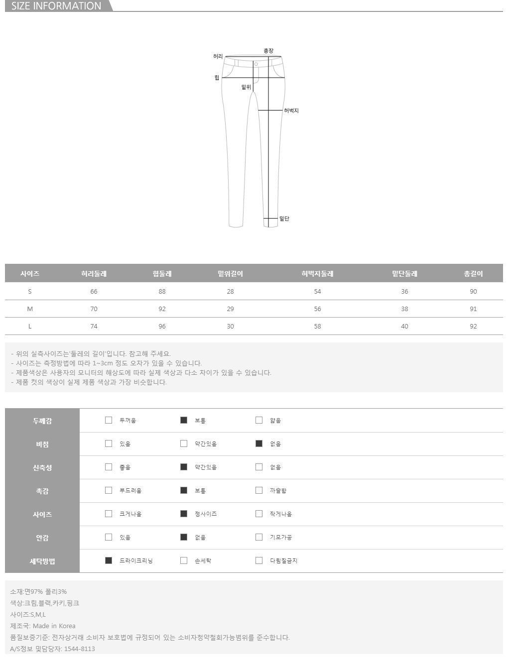 밴딩허리디테일을 더해 편안함과 스타일을 더한 배기팬츠랍니다 보드러운 터치감의 코듀로이소재의 슬림한 배기핏으로 자주찾게 되실꺼에요 COLORSIZE TIP