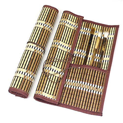 Easyou Bamboo Calligraphy Brush Holder Rollup Portable Protector 36x32cm(14.1"*12.5")