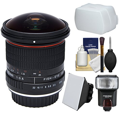 Vivitar 8mm f / 3.5Fisheye렌즈와 Flash +소프트 박스+diffuser+키트for Canon EOS디지털 일안레플렉스 카메라