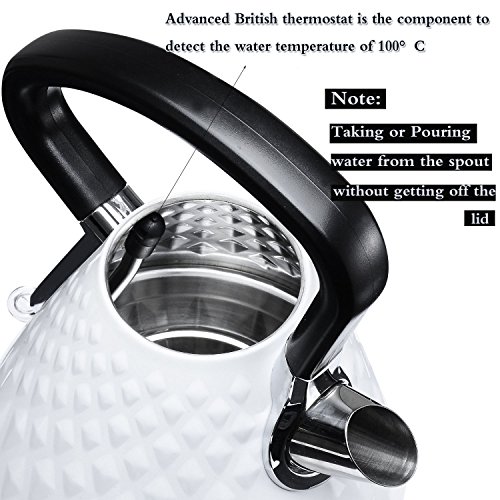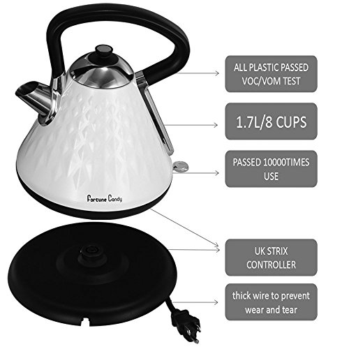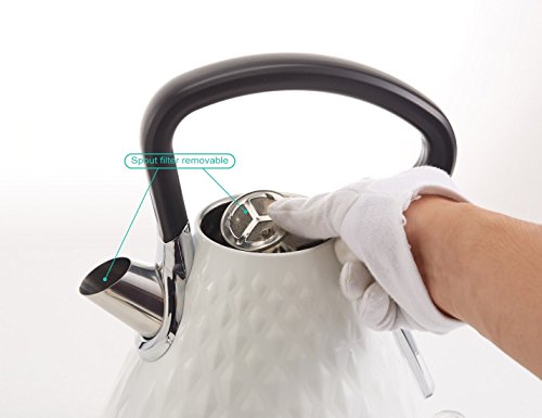 Stainless Steel Interior -- The cordless electric kettle safely boil your water while keeping it pure and uncontaminated; removable anti-scale filter conveniently rids your water of calcium residues.
