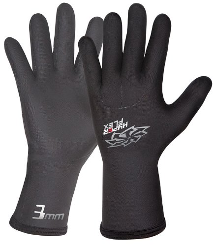 Amazon.com Whether you're diving, surfing, paddling, or operating a camera under water, when the temperature dips down you need a glove that will keep your fingers warm without limiting your dexterity. Enter the Hyperflex 3-millimeter Mesh Skin Glove--featuring a Super Stretch Neoprene Chill Breaker mesh skin rubber exterior that repels water and a comfy nylon exterior, this glove keeps your hands operable in frigid temperatures. The flexible gloves are pre-curved to prevent hand fatigue and, designed to keep water out and warmth in, the gloves have 100 percent sealed, waterproof glued and blindstiched seams and Super Stretch rubber for easy on/easy off and to further block water entry at the cuffs. Easily, one of the warmest gloves on the market, the Hyperflex Mesh Skin Glove is a perfect companion for aquatic pursuits in the cold. 0