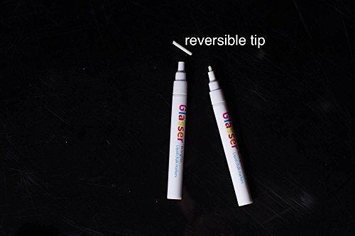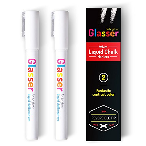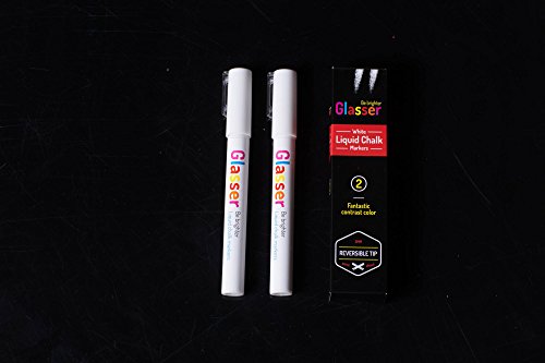 Feature : SET OF 2 WHITE LIQUID CHALK MARKERS WITH 3 MM FINE TIP. The tips and inks of the liquid chalk markers are produced in Japan. The chalk pens can be used in cafes and restaurants, for glass items, school work, food containers, ceramic mugs, contact paper, thank you stickers and wall decals, as blackboard markers and chalkboard pens. Save money by buying 2 or more sets! Scroll down to "Special Offers and Product Promotions" to learn more about our special offers. / SUPER EASY TO WIPE OFF FROM ANY NON-POROUS SURFACE. Erasing the chalkboard pens from non-porous surfaces such as non-porous chalkboards, glass, plastic or metal is a piece of cake! Just remove the marks with any cloth to get a clear, streak-free surface. Beware: you may have a hard time removing the erasable chalk markers marks from porous surfaces such as chalk paint. Prior to use, try the chalk pencil on a small section of the surface. / NON-TOXIC, WATER BASED, SAFE FOR KIDS. As the inks that we use are water based and don't contain alcohol or any toxic ingredients, they are 100% safe for your kids. Children are beyond thrilled when they get these vibrant and intensely pigmented markers, which allow them to draw perfectly smooth and consistent lines. Attention: keep an eye on your kids when they are drawing, and don't forget about the choking hazard. / WATER-BASED PAINT MARKER-EXTRA FINE POINT WITH A REVERSIBLE TIP Each liquid chalk marker in the set has two sides: on the one end you'll find a rounded tip, and the other end of the marker is chiseled.The chisel-shaped end is perfect for drawing ultra narrow lines, beautiful retro style letters, or it can be used as a bistro chalk marker. Our markers are often bought by teachers for school, preschool, kindergartens and colleges. / A 90 DAY MONEY BACK GUARANTEE. Go ahead, you have nothing to lose: if you are not happy with your purchase, we will return your money!