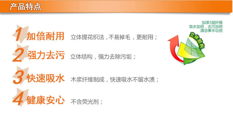 耐用棉抹布 清洁擦拭洗碗巾吸水不掉毛 3片装