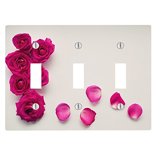 (Moonlight Printing)/Kids' Furniture Room Decor/Room Decor/DIRECT FROM USA/Pink Roses Rose Peddles 3 Toggle Electrical Switch Wall Plate (6.56 x 4.69in)