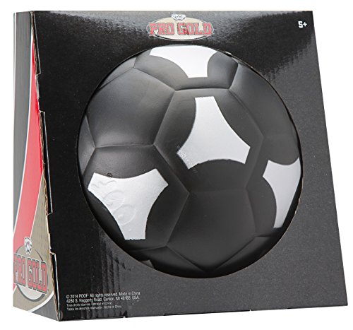-. Binding : Toy -. Brand : POOF -. Department : unisex-child -. EAN : 0083568004697 -. Feature : Unique black and silver colored regulation sized soccer ball / Made of soft foam / From strikers to centers, train like a pro / Includes 1 foam soccer ball (7.5in) / Recommended for children 5 years of age and older -. IsAdultProduct : 0 -. Label : Poof -. Manufacturer : Poof -. Model : 469TL -. MPN : 469TL -. PackageQuantity : 1 -. PartNumber : 469TL -. ProductGroup : Toy -. ProductTypeName : TOYS_AND_GAMES -. Publisher : Poof -. Studio : Poof -. Title : POOF Pro Gold Black Soccer Ball -. UPC : 083568004697 -. Warranty : No Warranty