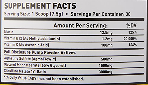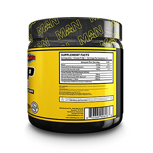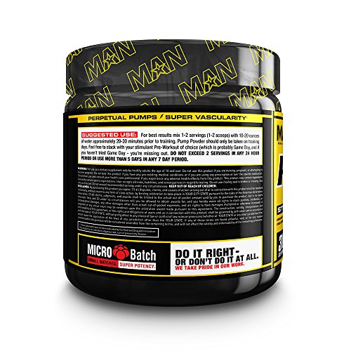 MAN Sports Pump Powder is a non-stim pre-workout supplement that provides rapid nitric oxide production, incredible muscle pumps and super vascularity. It's a great product to stack with a simulant-based pre-workout like Game Day or PepTest BULK. Pump Powder touts full label disclosure (not proprietary blends) showing you exactly how much of each ingredient it contains! It features Citrulline Malate, Agmatine Sulfate and Glycerol Monostearate. CLEAN - NO ARTIFICIAL COLORS OR DYES. MAN Sports Pump Powder is as clean as possible, containing no artificial colors or dyes, almost mixes completely clear in water! This is something you'll want to sip on all day! OUT OF THIS WORLD FLAVORS! It has nothing to do with science or efficacy, but it's important to enjoy what you spent your hard earned money on. We take flavor and mixability very seriously. This is where Pump Powder stands as the clear leader. MAN Sports has made monumental advances in flavor systems to provide extremely unique, mouthwatering, one-of-a-kind flavors.Feature
