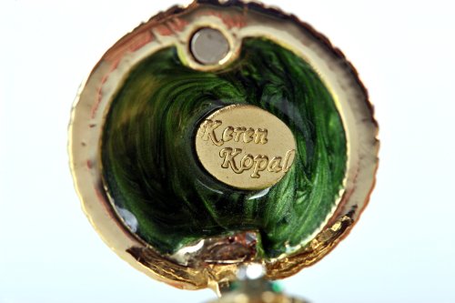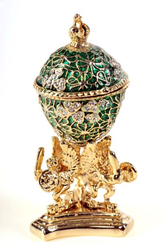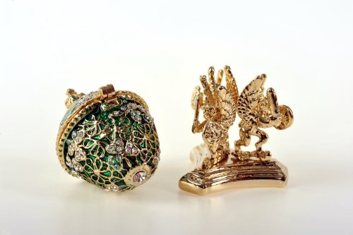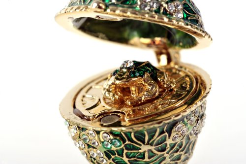 Green Faberge Egg Golden Base with Frog Inside Trinket Box Special Gift