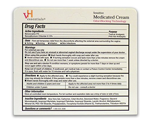 ReleaseDate : 2017-04-29 Studio : vH essentials Publisher : vH essentials Binding : Health and Beauty Product Description The vH essentials Advanced Sensitive Medicated Cream provides gentle soothing relief for already inflamed and delicate external area. This anesthetic/antibacterial formula offers prompt symptom relief with 5% Benzocaine. Only national brand to offer sensitive formula alternative containing vitamin E, aloe and odor blocking technology. 0