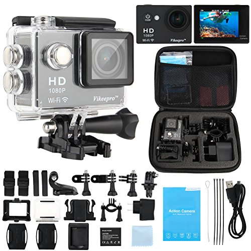 Waterproof WiFi Action Camera, Vikeepro 2.0 Inch Full HD 1080p 30fps Wifi Underwater Sports Action Camera With 170 Degree Ultra-wide Angle Lens, Wi-Fi Wrist 2.4G, 2 Batteries and Free Accessories Kit
