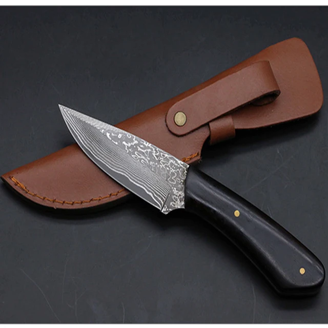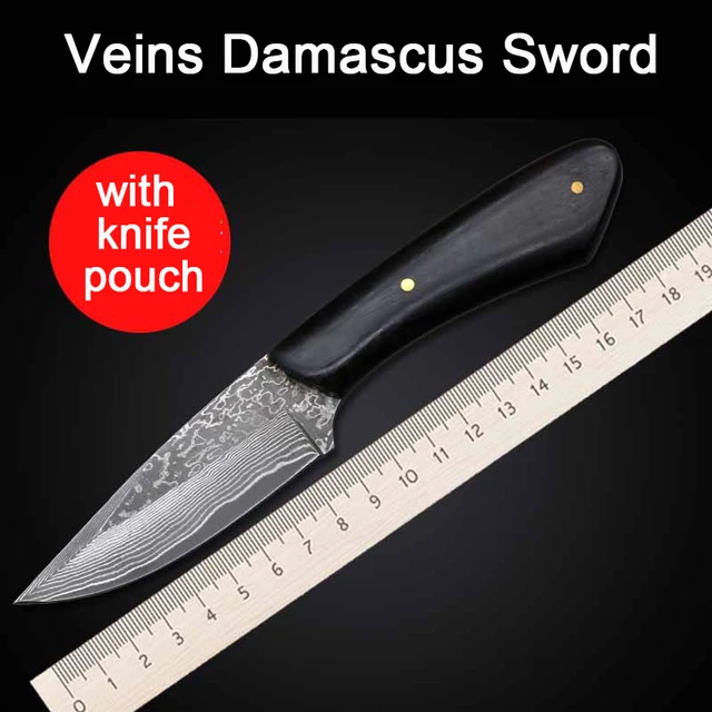 | [해외] 야외 도구 정맥 다마스커스 강철 블레이드 캠핑 나이프 미니 수행 높은 경도 전술 생존 방어 사냥 휴대용 EF31 |