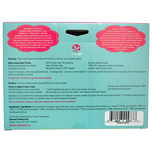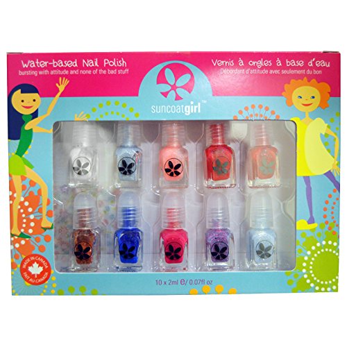 Each Kit contains 10 Mini Water Based Nail Polishes, 1 Nail File and 2 nail decal sheets.