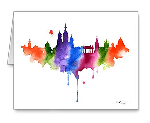 -. Feature : "St Petersburg Skyline" artwork by watercolor artist DJ Rogers. / Note card size is 4.25 x 5.5 inches / Set of 10 note cards with matching white envelopes. / Note cards are blank inside for your personal message. / Suitable for framing.